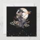 Cute witch in a big hat with her black cat on a broom in front of a harvest moon. Front of card also has two cute tombstones in the bottom right of the card and a mystical tree hiding in the background. This Witches and Warlocks Halloween Costume Party invite is sure to surprise and delight your guests. Reverse of this card has the cute witch in big hat with her black cat on a broom illustration centred. Black background with grey spheres. Party invite information such as month, date, day of the week and address, party time and RSVP information is fully customisable.