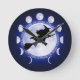 This stylish Flying Witch Moon Phase clock is just the the thing for telling when it is time for you to fly. It has a flying witch on a broom, flying across the full moon and has 12 moon phases in place of numerals. The slogan reads: IT'S JUST A PHASE I'M GOING THROUGH. This clock will look good in any room and will add a touch of humour too! Great fun for witches and busy people always rushing around flying about! More fun gifts and clocks available in the Chastemoon shop.