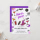 Celebrate Halloween with flair using this stylish Witches’ Night Out invitation. The design showcases playful doodles of cocktails, witch hats, spider webs, and bats, brought to life in vibrant pink, purple, and orange. Against a clean white background sprinkled with tiny stars, the bold brush-script headline Hocus Pocus stands out in modern purple lettering, adding a whimsical touch. Crisp black text makes it easy to personalise your party details, whether for teens or adults. With its magical purple reverse side, this versatile Halloween invite is perfect for birthdays, fun cocktail parties, or spooky trick-or-treat gatherings. Check for the colour variations and order the one you prefer!
