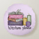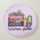 A playful witch-inspired throw pillow featuring a charming stack of magical books with the phrase "Witches Please." Perfect for book lovers, modern witches, and Halloween vibes.