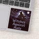 This sticker features a whimsigoth inspired oil painted print in purple white black with the words Witches Against Hate.