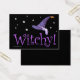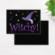 Linda Baysinger Peck's witch's hat design, with stars and purple text that reads "Witchy!" Just add your own text on the back, to personalise.