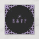 Simplify your RSVP process with this witchy quick response rsvp card with convenient QR code. Designed as a sleek enclosure card that allows your guests to scan the code with their phone to reply instantly on your website. With its elegant gothic tones and matching lavender hues, it’s a perfect complement to your Halloween invitation suite. Please make sure to replace the url in the template with your website or online form.