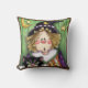 An Adorable Halloween Accent Throw Pillow Of A Cute Witch Scarecrow With Moon And Cat