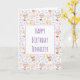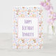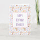 Birthday card with a cute and whimsical pattern. Hot air balloons and cute clouds with faces among stars and hearts and balloons. Soft pastel colours make up this adorable design. A white square with a pink border layered over top with your text inside.