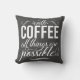 Face the day with a fresh cup of coffee and this cute typography throw pillow. Design features "With Coffee All Things Are Possible" in mixed white typefaces, on a brushed grey chalkboard background.