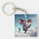 The keychain features an enchanting illustration of an elephant and a mouse navigating a tightrope high above the clouds. The elephant, holding a delicate lace parasol in one hand and a tiny cup of coffee in the other, exudes an air of calm and confidence. Its large, expressive eyes and slightly blushed cheeks add a touch of endearing innocence to its demeanour. Beside the elephant on the tightrope, a small, animated mouse offers encouragement. Its tiny paws are raised in excitement, and its wide eyes convey a mix of astonishment and cheerfulness. The mouse's playful nature contrasts beautifully with the elephant's serene composure. The backdrop of this whimsical scene is a sky filled with soft, fluffy clouds, providing a sense of elevation and tranquillity. The light blue hues of the sky complement the gentle colours of the characters, creating a harmonious and visually pleasing composition. The backdrop of this whimsical scene is a sky filled with soft, fluffy clouds, providing a sense of elevation and tranquillity. The light blue hues of the sky complement the gentle colours of the characters, creating a harmonious and visually pleasing composition. Below the illustration, the motivational phrase "With Coffee, Anything is Possible" is elegantly written in a combination of bold and cursive fonts. The word "Coffee" is highlighted in a rich, dark brown, emphasizing the beverage's importance in this delightful narrative.