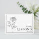 On the front, the caption "Kindly Respond" is prominently displayed at the top in a graceful font, followed by the RSVP date in a smaller, refined script. The design is subtly enhanced by a single-line rose artwork placed in the bottom left corner, adding a touch of elegance without overwhelming the simplicity of the front.