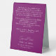 Turning to the back of the sign, against a plain magenta coloured background, a lovely message from the couple is displayed. This heartfelt text can include special sentiments, expressions of gratitude, or a personalised message to your guests. Beneath the message, the couples' names, wedding date, and location are elegantly showcased, adding a personal touch to the sign.