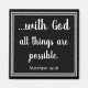 Matthew 19:26, ...with God all things are possible. Trendy and simple white script typography on a black background.