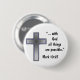 White button with black print, With God all things are possible bible verse. A picture of a grey cross is next to the bible quote.