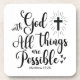 With God all things are Possible - Matthew 19:26 Bible Verse Design. This verse tells us that nothing is too hard to our Lord Jesus - all things are possible to Him, so let us trust His heart and love for us. Great gift for families and friends.