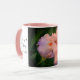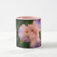 This coffee mug has a beautiful photo of a bright peach and lavender iris and one side it says With God all things are possible and the other Matthew 19:26