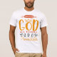 This bright and uplifting apparel design features the powerful inspirational quote, "With God All Things Are Possible," from the Bible (Matthew 19:26). The design is set on a clean white background, utilizing a mix of bold, stylized typography in vibrant orange and muted gray/blue. The word "GOD" is emphasized in a large, prominent font and is topped with a small, stylized golden crown graphic, symbolizing divinity and royalty. The phrase is rendered in a mix of playful, modern, and distressed fonts, with small design elements like dashes and banners adding a contemporary touch. This versatile T-shirt design is a perfect way to express faith, hope, and optimism, serving as a daily reminder of strength and belief. It is suitable for personal wear, Christian gatherings, or as a thoughtful gift for someone needing spiritual encouragement and a declaration of faith.