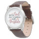 Watch for him, great as a gift for a Pastor, "With God all things are possible" on the face of the watch, Brown Leather band. Birthday, Father's Day,