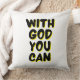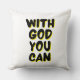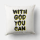 This throw pillow design has the words "With God You Can" in a bubble style print plus black letters and yellow shadow outline with a typograph style in this faith based theme. This pillow is made with high quality simplex knit fabric our pillows are soft and wrinkle-free the cover is machine washable.