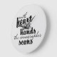 Purchased this online and it got delivered quickly. It was a present for my Dads 70th birthday. He loves clocks so decided to get him one with something written on it. Battery went in and it started working straight away. Dads had no issues with it. Printing was just how it came up online.