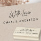 Rubber stamp featuring the text "with love" in an elegant script font with your custom name below.