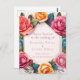 This floral wedding invitation design radiates elegance and romance, making it the perfect choice for a couple’s special day. The invitation features a luxurious arrangement of vibrant roses that cascade across the top and side of the layout, leaving a clean, open space at the bottom for text. The color palette is a harmonious blend of soft pastels and bold, vivid tones, combining creamy whites, blush pinks, fiery oranges, romantic reds, and an eye-catching blue rose that adds a touch of uniqueness to the design.