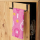 Custom monogram Pink and white tennis rackets with yellow tennis balls on pastel pink background. Cute pattern for tennis players and fans. kitchen towel with tennis pattern. Great as a gift for tennis player