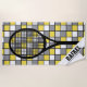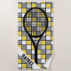 Customizable Beach Towels. Black, white, gray and yellow checks and black tennis racket with customizable name. Perfect as a Christmas gift. Great as a gift for any occasion, too. Beach Towels for tennis players