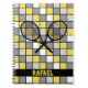 Black, white, grey and yellow checks and two crossed black tennis rackets with customisable name. Perfect as a Christmas gift. Great as a gift for any occasion, too. Gift for tennis players