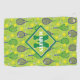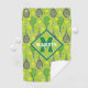 With name & initial, Green and purple tennis rackets with yellow tennis balls on juicy green background. Cute pattern for tennis players and fans. Golf Towel with tennis pattern. Great as a gift for tennis player. Monogram and custom name in the middle