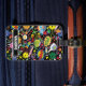 Mixed pickleball doodle on black. Perfect as a gift for pickleball player. Luggage Tag with black pickleball motif and custom text