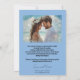 Turning to the back of the invitation, a serene pale blue background provides a canvas for personalisation. Here, the couple's photo adds a personal touch, capturing their love amidst the beauty of nature. Below, a spacious area awaits custom text, whether it's a heartfelt message, additional wedding details, or RSVP instructions, allowing the couple to tailor their invitation to suit their unique style and preferences.