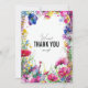 Completing the card are the couples' names, along with the date and location of the event, elegantly displayed at the bottom. This Wedding Thank You Card is part of the comprehensive "Meadow Blooms Collection," which includes a variety of matching wedding stationery options. Each piece is designed to complement the theme of natural elegance, ensuring a cohesive and visually stunning presentation for your wedding celebration.