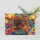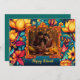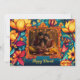 This "Floral Joy Diwali Greeting" card bursts with vibrant colours and intricate floral patterns, embodying the festive spirit of Diwali. The background is a deep navy blue, creating a bold contrast to the bright, vivid flowers that decorate the card.