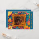 The front of the “Radiant Diwali Blossoms” greeting card is adorned with a vibrant and intricate floral border. The flowers, in shades of orange, yellow, blue, and pink, are stylised with detailed embellishments that evoke the rich traditions of Indian art. These colourful blooms frame a central area designed to hold a custom photo, making the card personal and unique.