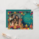 The back of the card is a solid turquoise colour, matching the rich hues from the front. It includes customisable text in white font, providing a striking contrast and making the message easy to read. This card radiates a festive and joyful atmosphere, with a perfect blend of traditional and modern elements.