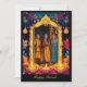 The text on the front reads “Happy Diwali” in large, elegant yellow script, followed by “from [Your Family Name]” in a smaller white font, the text can be personalised. The background around the frame is richly decorated, enhancing the celebratory feel of the card.