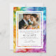 Introducing the "Ethereal Bloom Collection" save-the-date card, offering an elegant preview of the vibrant artistry that will surround your forthcoming celebration. The front of this card showcases mesmerising alcohol ink artwork in swirling hues of blues, purples, reds, oranges, and greens, with ethereal double-exposed lilies framing the design. The gentle caption "Save the Date" is followed by the couple's names, wedding date, and location, all elegantly presented to set the perfect tone for your special day.