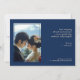 Your personalised text seamlessly floats above this tranquil scene, offering a glimpse into the heartfelt ceremony that awaits. Flip the invitation over, and you’ll find a matching blue background, creating a cohesive and harmonious design. On the left side, a cherished photo of the couple takes centre stage, adding a personal touch. On the right side, customisable text provides all the essential details, ensuring your guests are well-informed and ready to celebrate your special day.
