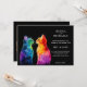 The invitation features two rainbow-coloured cats on the left side, gazing at each other with passion. Their vibrant colours represent the LGBTQ+ pride flag. On the right side, the invitation text is elegantly placed in a clean, modern font. The text is fully customisable, allowing space for the couple's names, wedding details, and any other personalised message. The black background enhances the vivid colours of the cats, making them the focal point of the design. On the back, the left side features a customisable photo of the couple, capturing a special moment, while the right side provides extra text lines for additional information, such as RSVP details, a heartfelt message, or wedding hashtags. The overall design ensures that both the photo and text are balanced and visually appealing, making it a perfect choice for couples who want to showcase their unique love story in a bold and colourful way. This invitation is part of the Purrfectly Yours: A Rainbow Love Story collection.
