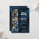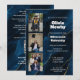 A deep royal‑blue marble background with gold accents creates a bold, elegant foundation for this graduation party invitation. The front features three customisable photo frames, perfect for showcasing the graduate’s proudest moments. All text fields can be personalised, allowing you to tailor names, degrees, dates, venues, and messages to suit any celebration style. The back includes space for an RSVP QR code, giving guests a quick and convenient way to respond online. A sophisticated, modern choice for marking an unforgettable milestone.