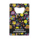 Sweet black Credit Card Bottle Opener with Groovy, retro 90s style pickleball pattern with yellow pickleballs and black background.