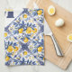 🍋 Kitchen towel with stunning Azulejos. 🍋 Lemon Azulejo with blue floral elements. Stunning floral motif tile pattern with blue and yellow, in the style of Spanish Azulejo, traditional motifs, bold colours and patterns, inspired by folklore,