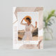 Simple and modern photo graduation announcement features a vertical photo on a background of neutral colour watercolor shapes and abstract splotches with rose gold foil accents. "Graduate" runs up the left side, with your grad's name, school, and class year beneath. Add a personal message to the back, along with an additional photo.