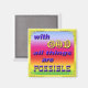 Magnet with words With GOD all things are POSSIBLE on a raonbow background with gold coloured frame