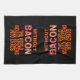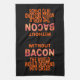 The phrase "Without bacon, the world would descend into chaos" The background for the letters in the word "bacon" is bacon!