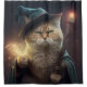 Transform your bathroom into a magical realm with our enchanting Wizard Cat shower curtain. This one-of-a-kind shower curtain features an adorable and whimsical cat dressed in a wizard's robe and hat.