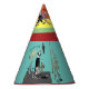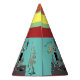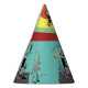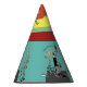 A sweet little party hat designed with classic elements and colours red teal and yellow