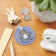 Old wizard with blue cape looking at crystal magic ball. Custom text on both sides.