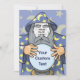 Old wizard with blue cape and crystal magic ball. Use face photo to customise. Custom text.