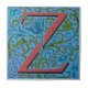 Wm Morris Ornate Initial "Z" Letter Ceramic Tile