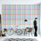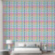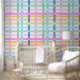 Bring instant cheer to your space with this wobbly paint stroke style neon pastel plaid wallpaper for interiors. The soft rainbow stripes and woven look create are ideal for brightening living rooms, nurseries, or creative studios. A colorful, bold, and maximalist statement piece that adds imagination, joy, and optimism to any wall. Great for fun and colorful birthday photo walls, too!