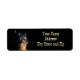 A pretty wolf in the night with a crescent moon. A dramatic return address label.